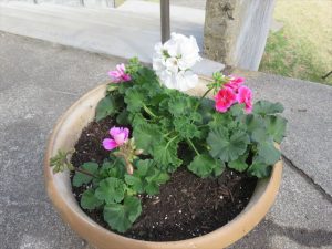 寄せ植えで事務所周りが華やかになりました。