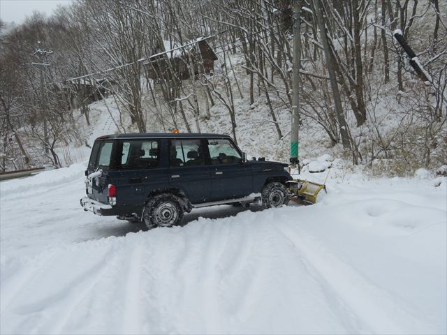 朝からランクルも出動して除雪作業を行いました。