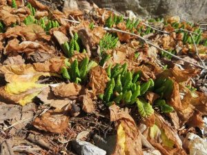 緑の村入口の植え込みも少しずつ緑が顔を出し始めました。