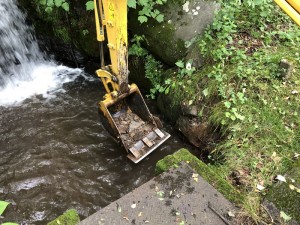 今後の台風や大雨の際、枝や落ち葉が詰まり氾濫しないように堆積物を取り除きました。