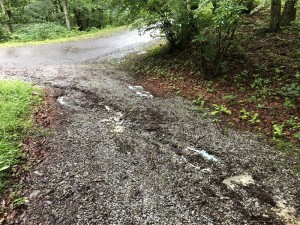 先日の雨で少しえぐれてしまった砕石道路の補修を行いました。
